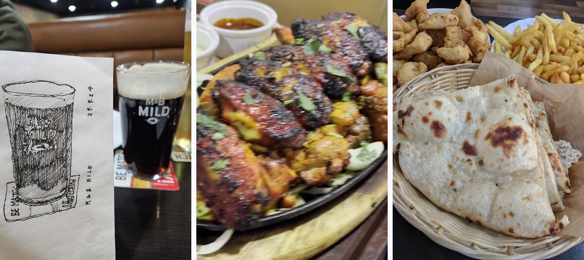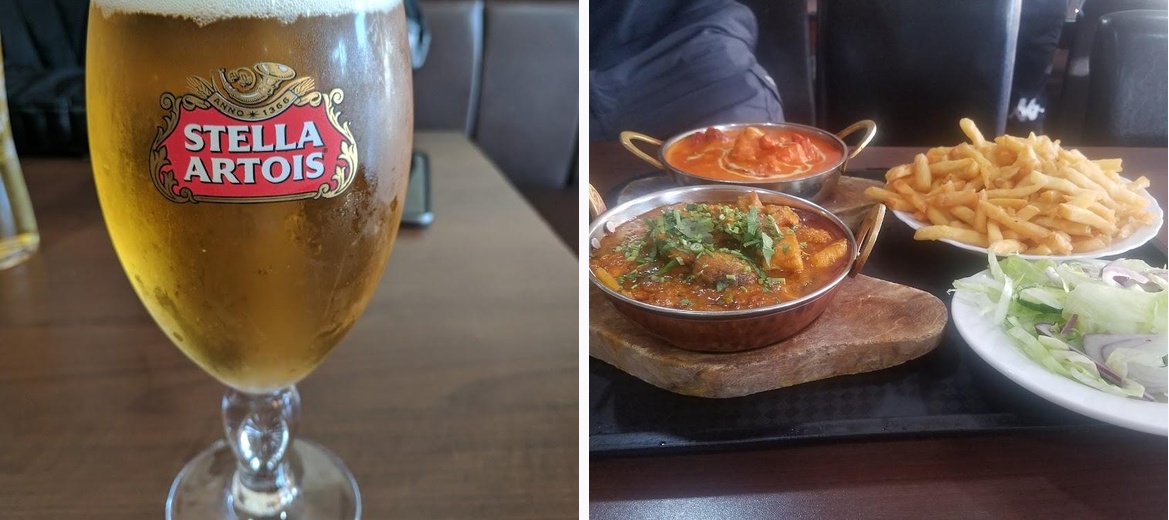 This is a great pub with great food and a good selection of meals/currys to choose from. The lamb curry was simply perfect, done properly and with the right balance of spices and flavours. The fish pakora is the best I've tasted in any pub so far. The service is decent and the atmosphere is of a typical pub with lots of screens. Keep in mind that the food will all be prepared together so once they call you to collect your food you'll have all of it (starters and main course) in one go, so if you want to take it slow, just let them know in advance.